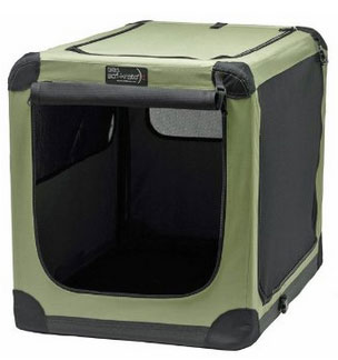 The Noztonoz Sof-Krate Indoor/Outdoor Pet Home is a portable enclosure for a pet of almost any size. The options range from a 15-pound dog to a 90-pound dog, with five sizes in all. The whole thing collapses easily with the push of a button, and it can be set up just as easily. You can store it under the bed or in the closet when it’s not in use. Take it on vacation or use it as a safe, quiet place for your pet in your own home. The pet home is ventilated on three sides with mesh windows, and there are no small or sharp pieces that could harm your pet.